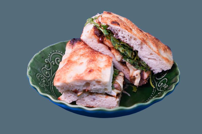 Homemade fig spread, creamy brie, and fresh pear finished with arugula and balsamic glaze.